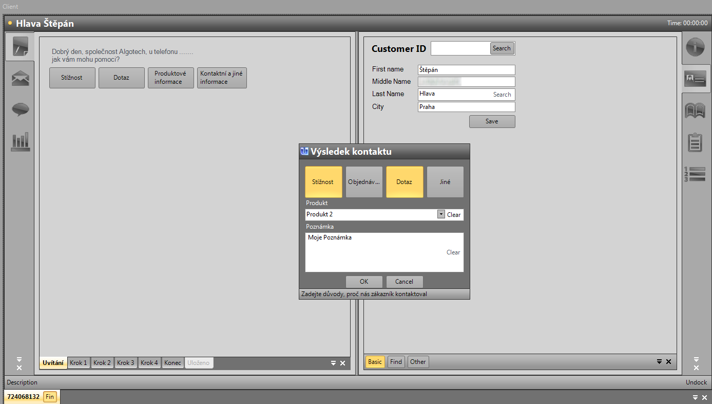 Pro vytáčení hovorů, volání, příjem hovorů z PC a další běžné činnosti operátora je možné využít softwarový telefon, který je součástí řešení AlgoCC. Aplikaci je možné využít i v kombinaci se stolním telefonem operátora. Jednoduché uživatelské rozhraní je navrženo tak, aby poskytlo snadný přístup k běžným funkcím operátora. AlgoCC klient umožňuje operátorovi zalogovat se do skupin dle svých znalostí či zaměření (tzv. skilly), změnit stav a režim práce, nahlédnout do požadavků, které mu náleží, sledovat statistiky výkonnosti centra atd.
